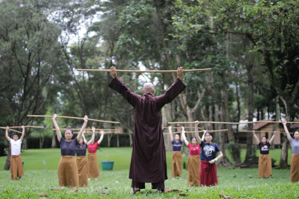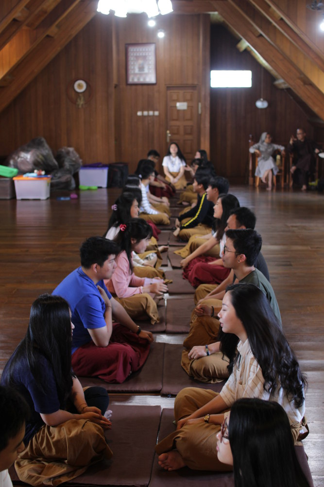 We consistently meditated at 5:30 am in the morning for 5 consecutive days. There was sitting meditation, walking meditation, and mindful movements. The sitting meditation lasted about 20-30 minutes in which Bhante Nyanabhadra gives simple instructions such as “Breathing in, I am aware of my in breath. Breathing out, I am aware of my out breath.” It helped us to get into the zone.