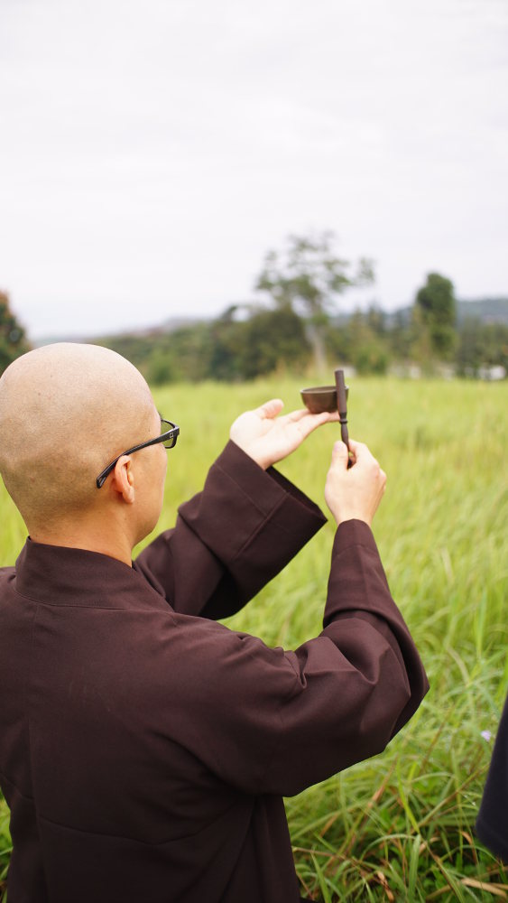Afterwards, we did some walking meditation indoor and outdoor. In the case of outdoor, we ambled and ventured in the nature behind the house. Being in the present moment that I was, I observed how the leaves dancing when the wind blew past them; the grass gently kissing our feet; the mountains spreading across the horizon; the boundless blue sky; the tinkling sound of the bell.