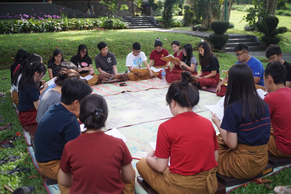 KMVB UPH (Keluarga Mahasiswa Vidya Buddhis, Universitas Pelita Harapan) hosted an event called “Fun with Dharma” which basically means learning Dharma in a fun way. It was hosted in Cipayung, at a place called Pondok Sadhana Amitayus. It was led by Bhante Nyanabhadra (Br. Pháp Tử), a student of the world-renowned Zen Master, Thich Nhat Hanh. Bhante Nyanabhadra faced through many challenges in order to become one of 800 disciples of this great Zen master.