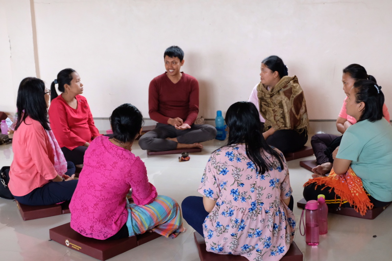 Latihan kedua. Menyadari tubuh dan ikuti napas masuk dan napas keluar. Ikuti saja. Tidak perlu memaksa untuk mengubahnya. Bawa perhatian pada napas dan secara alami izinkan napas menjadi lebih tenang, lebih dalam, lebih pelan dengan secara alami. Jika kita bisa berlatih seperti ini, bukan hanya napas kita yang menjadi tenang, tapi tubuh dan pikiran kita juga dapat menjadi tenang.