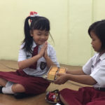 Anak-anak terlihat sangat antusias dan berusaha melakukannya dengan sungguh-sungguh. Jika ada temannya yang lupa memberi bow, mereka akan saling mengingatkan dengan berbisik, “Bow dulu.”