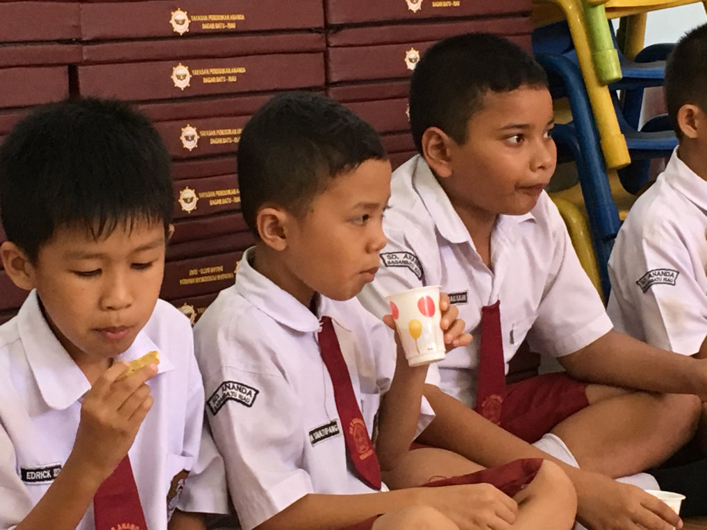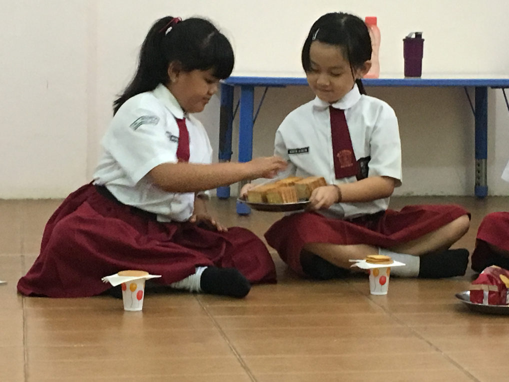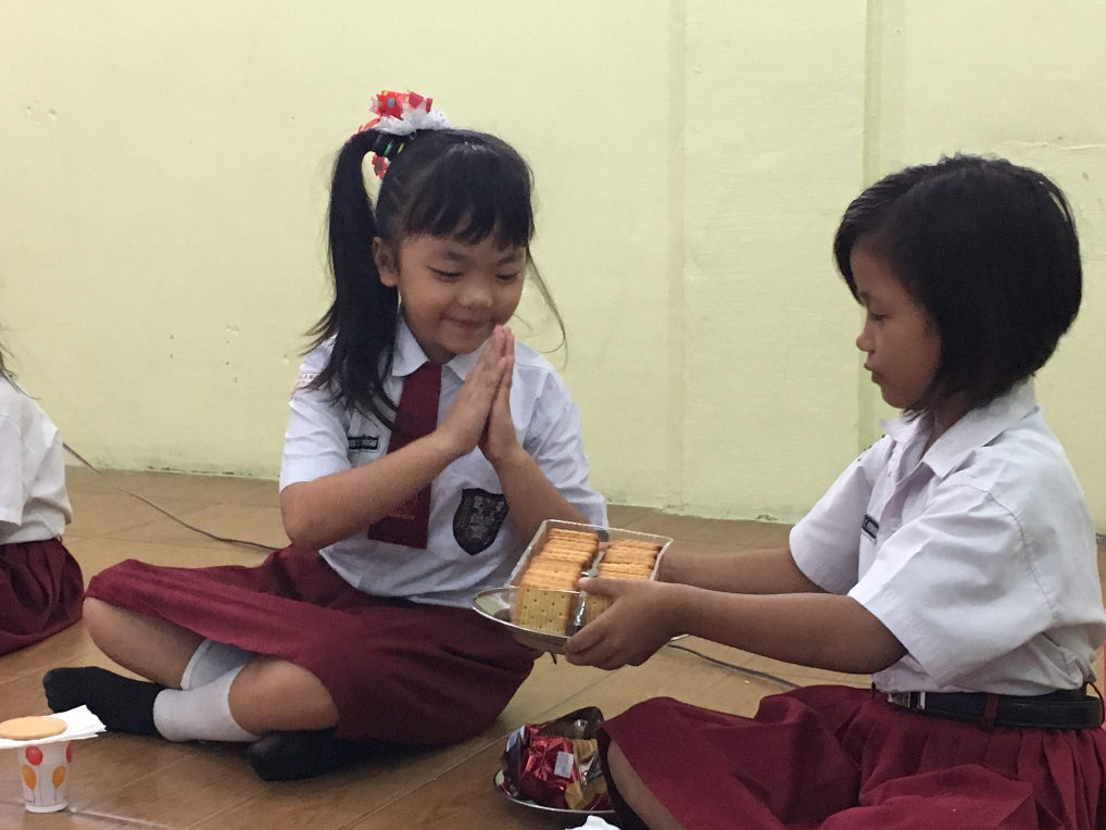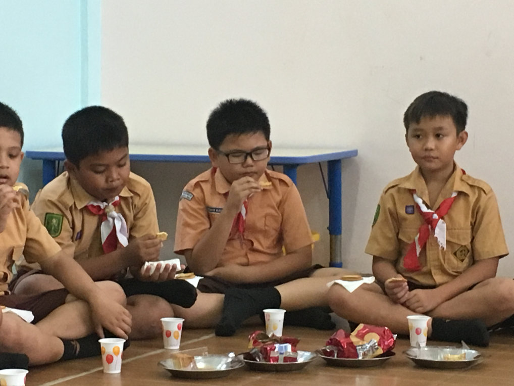 Ketika diumumkan akan diadakan “biscuit meditation” untuk siswa SD, mereka sangat antusias dan penasaran. Ini kali pertama bagi mereka. Bagi siswa SMP, mereka sudah pernah melakukannya. Agar bervariasi untuk siswa SMP, saya memakai sistem potluck yang mana setiap anak diminta untuk membawa satu bungkus kecil biskuit yang akan kami nikmati bersama ditemani segelas teh. Biskuit yang terkumpul menjadi sangat bervariasi sehingga mereka lebih bersemangat.