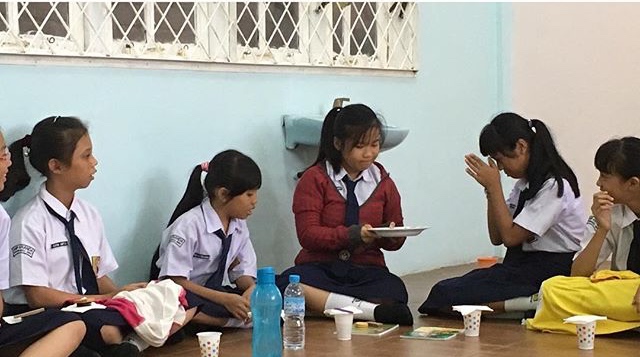 Lain halnya dengan siswa SMP. Dalam kelas ini, mereka bukan hanya belajar menikmati makan dalam hening dan tidak terburu-buru, tetapi mereka juga dilatih agar dapat melihat sifat ‘interbeing‘ dari makanan yang mereka konsumsi.