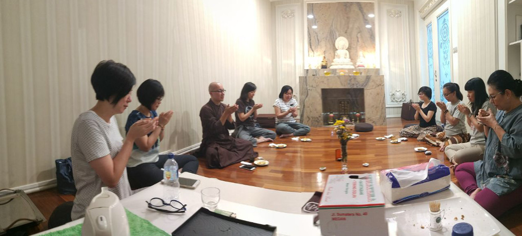 Ini adalah pertemuan Ordo Interbeing dan Volunteers yang selalu membantu dalam kegiatan Day of Mindfulness (DOM) dan Retret. Ada juga teman-teman dari SIDDHI Medan yang turut serta. Lokasi pertemuan bertempat di cetiya kecil dari Sis Wen Juan (nomor enam dari kanan).