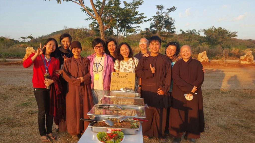 Di penghujung retret, masing-masing negara juga berkesempatan memperkenalkan makanan daerahnya masing-masing. Teman-teman dari Indonesia sama-sama menyediakan pecel. Makanan diletakkan di meja untuk dinikmati dalam bentuk buffet. Sore itu indah dan sejuk, semua peserta mencicipi masakan dan makanan dari berbagai negara sambil duduk lesehan di tikar yang sudah disediakan, suasana kekeluargaan sungguh menyejukkan.