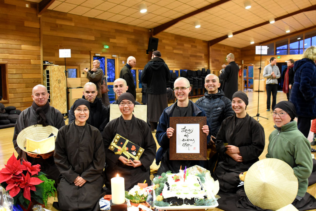 Plum Village Perancis menyambut kedatangan monastik baru pada tanggal 14 Desember 2017. Mereka terdiri dari aspiran pria yaitu: Rupert dari Austria, Gabriele dari Italia, Khoa dari Vietnam-Australia, Marvin dari Jerman-Suriname, and Hernando who is Colombia-Perancis. Aspirant wanita ada Marie dari Perancis, Suriyana dari Indonesia, Linh dari Singapura, dan Thuy dari Vietname-Australia. Mereka ditahbiskan dalam keluarga penahbisan “Poplar Tree“.