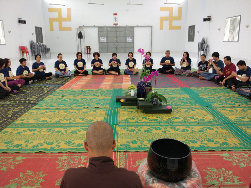 Saya lihat jam sarapan sudah hampir tiba, lalu bergegas ke ruang makan untuk ikut sarapan bersama-sama. Setiap sesi meditasi makan, semua akan duduk dengan hening mendengarkan lima renungan sebelum makan. Pagi itu sungguh beruntung, menunya adalah bubur, dalam hati berkata “Wow, nikmat sekali…..”.