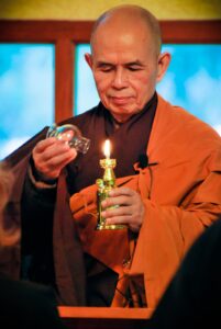 Marilah kita berusaha sebaik-baiknya dalam beberapa hari ini untuk membangkitkan energi kesadaran penuh, kedamaian, welas asih untuk dilimpahkan kepada Thay.
