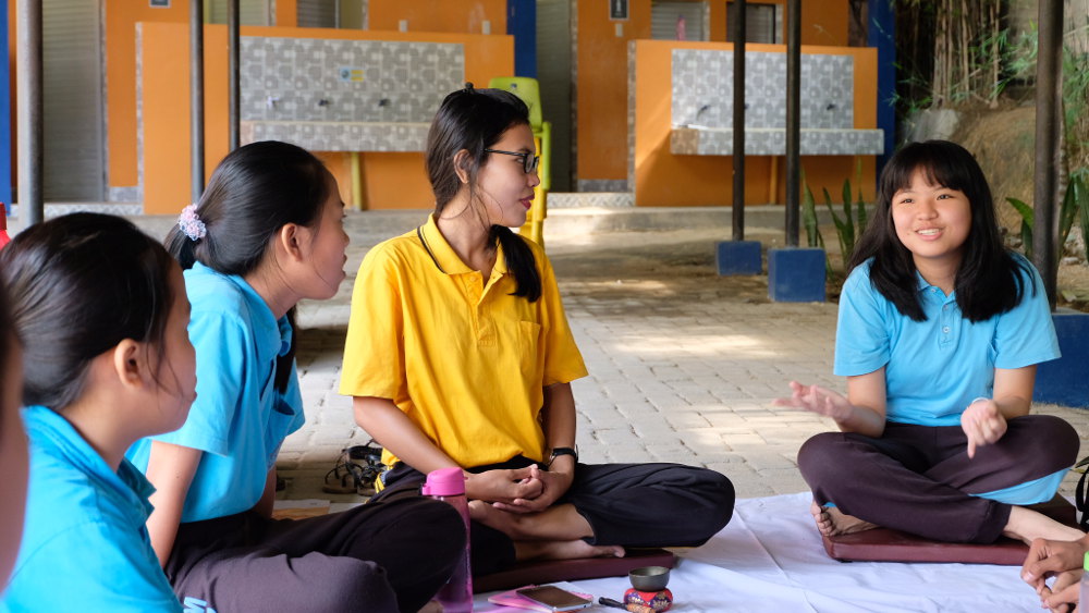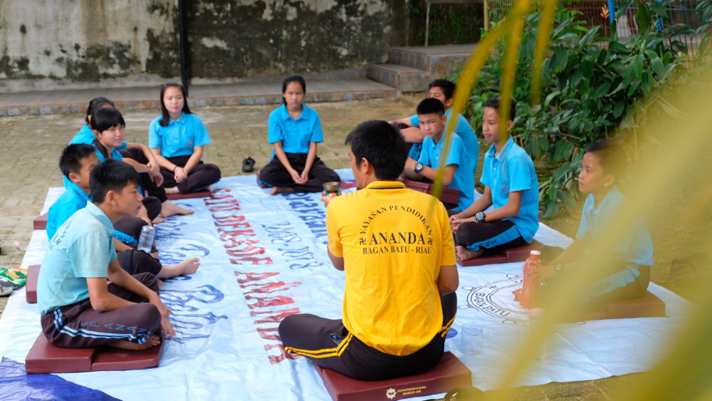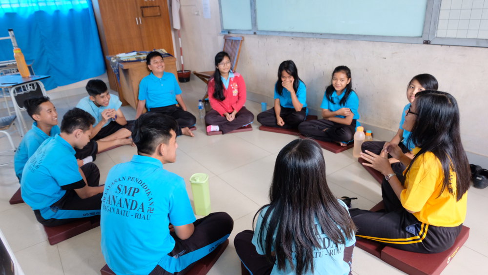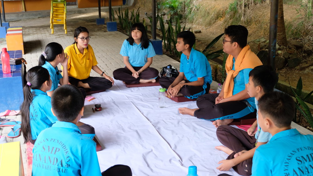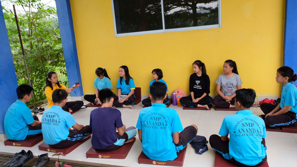 Siswa SMP Sekolah Ananda pertama kali mengadakan Day of Mindfulness (DoM). Anak-anak sudah pernah mempraktikkan hidup berkewawasan (mindfulness) ketika makan, duduk, relaksasi total. Praktik ini sudah dilakukan secara rutin oleh para guru, sekarang saatnya untuk mengajak anak-anak untuk ikut latihan juga.